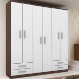 Guarda-roupa Madri 6 portas 4 gavetas Chocolate & branco Rodial