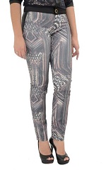 Calça estampada com boso falso frente e costa, fechamento com botões e ziper 50% algodão 47% poliester 3% elastano.