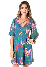 O modelo possui decote em ”V” com detalhe cruzado, mangas fluídas e caimento soltinho. Para uma produção linda e cheia de charme! (Veja mais detalhes aqui)